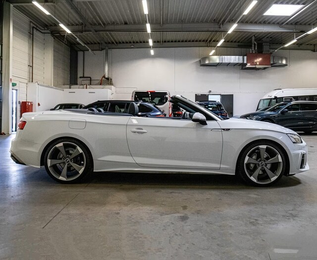 Schitterend Uitgevoerde Audi A5 Cabriolet 40 Tfsi S-Tronic van 10-2022 met 67.369km. gereden in het Gletscher Weiss Metallic met een Antraciet Lederen/Alcantara S-LINE Interieur (Sportstoelen) die o.a. is uitgerust met de onderstaande opties & accessoires: (4A3) Verwarmde voorstoelen, (PXB) Matrix LED-koplampen met Audi laserlicht & LED-achterlichten en koplampreinigingssysteem, (6K8) Audi pre sense city, (7K1) Bandenspanningscontrolesysteem, (9ZE) Audi telefooncel, (PYH) Navigatiepakket, (PYG) Smartphone infotainmentpakket, (GB1) LTE-ondersteuning voor Audi telefooncel, (IW3) Audi connect noodoproep & service met Audi connect afstandsbediening & bediening, (QV3) Digitale radio-ontvangst, (4GF) Voorruit met warmte-isolerend en akoestisch glas, (9AQ) 3-zone deluxe automatische airconditioning, (9S9) Audi virtual cockpit plus, (1XW) Multifunctioneel 3-spaaks lederen Sportstuur - onderaan afgevlakt - met Schakelfunctie, (4UF) Airbags voorin / airbag voorpassagier uitschakelbaar, (VL1) Verbeterde voetgangersbescherming, (6XL) Buitenspiegels elektrisch verstelbaar - verwarmbaar & inklapbaar met Dimfunctie, (8K4) Dagrijverlichting, (1G8) Bandenreparatie-set, (4X1) Zij-airbags voor, (3B3) ISOFIX kinderzitje bevestiging en top tether voor de achterbank, (7S1) Winddeflector, (7L8) Start-stopsysteem, (V88) 20-inch L.M. Velgen - Bicolour in Rotor Design 5-Spaaks, Lendesteun Voor, Achteruitrij-camera, Cruise Control, Alarm, Etc, etc......