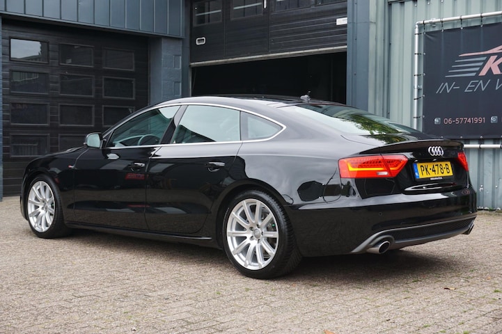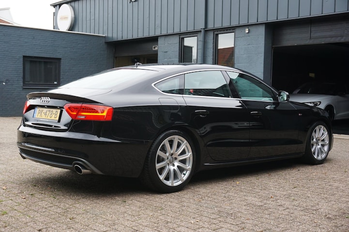 Zeer nette en volledig onderhouden Audi A5 Sportback 1.8 TFSI 170PK automaat 3x S-line voorzien van opties zoals; S-line exterieur/interieur/onderstel, black edition accenten, bi-xenon/led koplampen, led achterlichten, navigatiesysteem, vol lederen sportstoelen, spraakbediening, cruise control, multimediasysteem met sd/aux/radio/cd, parkeersensoren achter, start/stopsysteem, climate control, lendensteun, elektrische ramen voor en achter, elektrisch bedienbare/verwarmbare/inklapbare spiegels, multifunctioneel geperforeerde lederen sportstuurwiel, led dagrijverlichting, led achterlichten, armsteun, dimlichten automatisch, regen- en lichtsensor, binnenspiegel automatisch dimmend, zwarte hemel, 18 inch lichtmetalen Audi velgen met zeer goede Continental allseason banden, stuurbekrachtiging, centrale deurvergrendeling op afstand, 2 sleutels en nog veel meer.