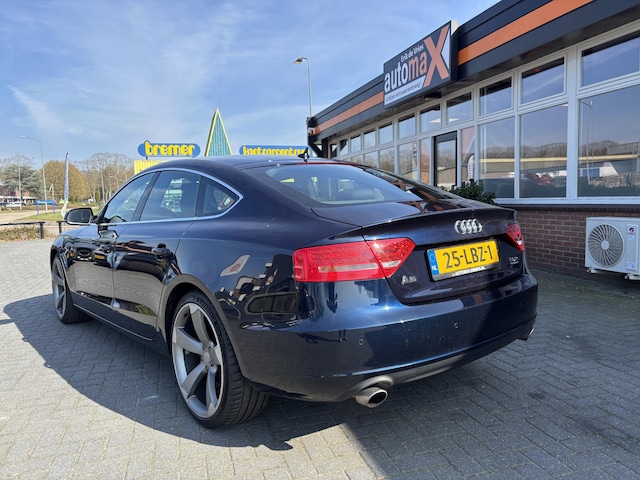 Dit is onmiskenbaar Duitse topkwaliteit. Indrukwekkende prestaties, vooruitstrevende techniek en ultiem betrouwbaar. Deze Audi A5 Sportback heeft het allemaal. De aandrijving wordt verzorgd door een zescilinder benzinemotor en een automatische transmissie. Mooi om te zien en heerlijk om in te zitten zijn de sportstoelen, die u onderweg optimale ondersteuning geven. De gasontladingslampen van de xenonverlichting zorgen voor een krachtige en heldere lichtbundel. U wordt in deze auto ook getrakteerd op 18 inch lichtmetalen velgen, sportonderstel, in delen neerklapbare achterbank, verstelbare lendensteunen, verwarmde ruitensproeiers en snelheidsafhankelijke stuurbekrachtiging.