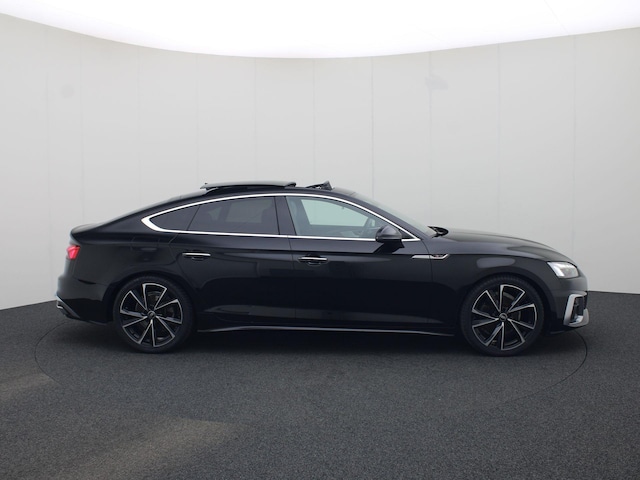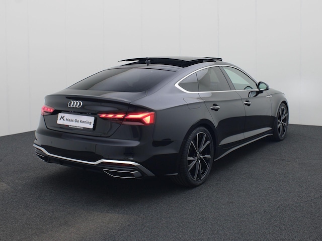 Rijden als nieuw? Dan is deze Audi A5 Sportback een fantastische buitenkans. Prille cijfers op de teller, piepjong ogend, verbluffend actueel in extra's en opties... Deze Audi A5 Sportback heeft het allemaal! Het S-Line styling pakket maakt direct duidelijk waar deze Audi voor staat: onversneden sportiviteit en rijdynamiek. De aandrijving komt voor rekening van een benzinemotor en een automatische transmissie. Inladen is een eitje met de elektrisch bedienbare achterklep. En voor een frisse wind tijdens de rit is er het elektrisch bediende glazen panorama dak. Op koude dagen voelt u zich snel behaaglijk op de verwarmbare stoelen. Vergeet halogeen; deze koplampen gebruiken de allernieuwste matrix LED-technologie met maximale lichtopbrengst zonder de tegenligger te hinderen. Bij de rijke uitrusting horen ook 19 inch lichtmetalen velgen, sportonderstel, adaptief dempingsysteem, warmtewerend glas, in delen neerklapbare achterbank en LED-achterlichten.