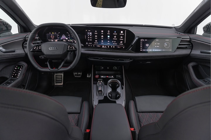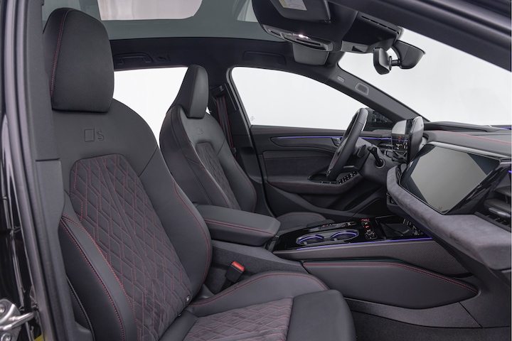 • Interieur S met sportstoelen plus Dinamica/leder zwart met rode stiknaad (YYB)