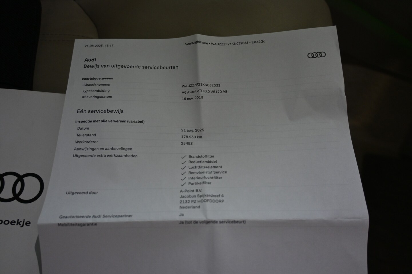 | APK | Bij aflevering |