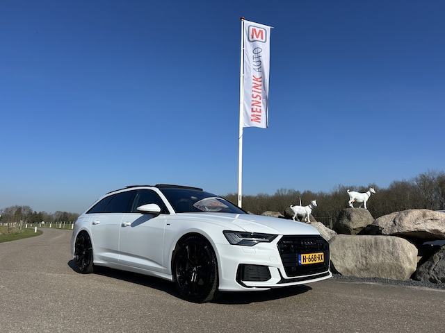 Audi A6 Avant 45 TSI quattro automaat in de kleur wit metallic. Volledige onderhoudshistorie is aanwezig. Sportieve S Line uitvoering met RS sportstoelen voorzien van zwart leer afgewerkt met witte stiksels en stoelverwarming, Matrix Led, Bang en Olufsen Sound Systeem, afgevlakt lederen sportstuur, verwarmde achterbank, achteruitrijcamera, Apple Carplay Android Auto, adaptieve cruise control, climate control, draadloze telefoonoplader, elektrisch bedienbare achterklep, elektrisch verstelbare bestuurdersstoel met geheugen functie, elektrisch glazen panorama dak, getinte ramen, keyless entry, zwarte 20 inch lichtmetalen velgen, navigatie, parkeersensoren voor en achter, S line exterieur en interieur, uitklapbare trekhaak, virtual cockpit, zwarte hemelbekleding etc. Inruil en financiering is mogelijk bij Mensink Auto. Voor meer informatie bel 0653617098 of zie de website www.mensinkauto.nl