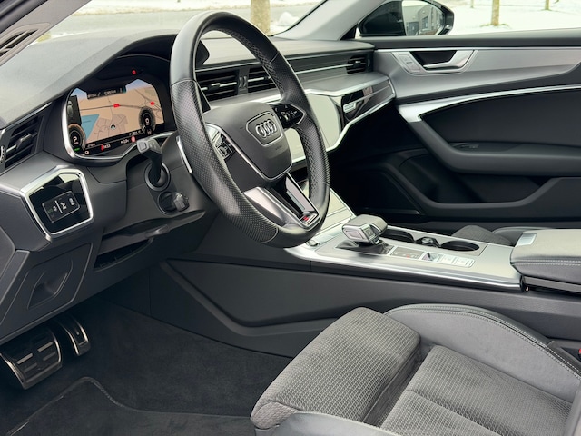 U ziet het al aan de buitenkant en u voelt het zodra u de krachtige motor start, deze sportieve Audi A6 Avant is gemaakt om prestaties te leveren. Houdt u van een sportieve, dynamische uitstraling? Dan komt de S-Line styling als geroepen. De verwarmbare voorstoelen zijn een weldaad voor rug en schouders. Opvallend zijn de stoere sportstoelen, die zorgen voor een onwrikbare zit in de scherpe bochten. De elektrisch bedienbare achterklep opent met een druk op de knop. Stramme vingers krijgen 's winters een VIP-behandeling van het verwarmd stuurwiel. De koplampen zijn voorzien van matrix LED-verlichting waarmee u aanzienlijk verder kan kijken in het donker. Het systeem past zelf de lichtstraal aan op het moment tegenliggers verblind kunnen worden. Verder is de Audi uitgerust met: sportonderstel, warmtewerend glas, in delen neerklapbare achterbank, LED-achterlichten en verstelbare lendensteunen.