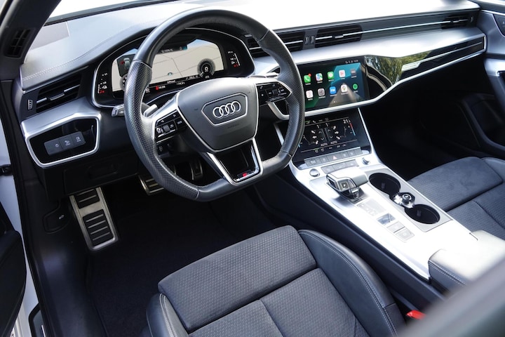 Audi A6 Avant S-line van 2022 met 265PK welke goed uitgerust is qua opties en een sportieve uitstraling heeft dankzij de getinte ramen en de 20 inch zwarte lichtmetalen velgen! Door de hybride uitvoering kunt u voordelig elektrisch rijden!