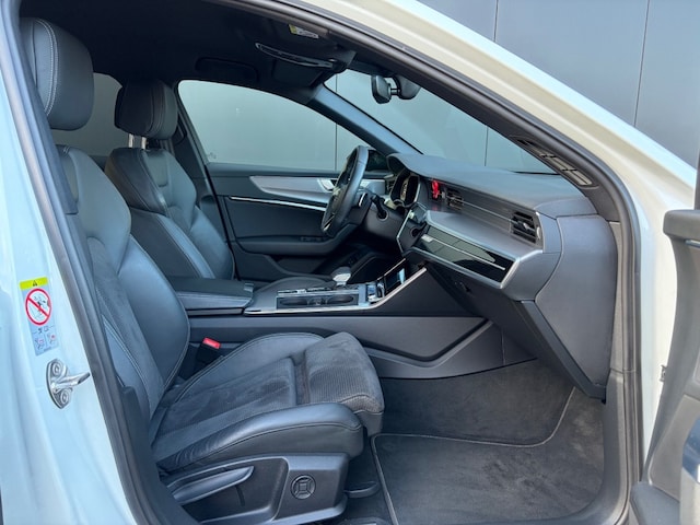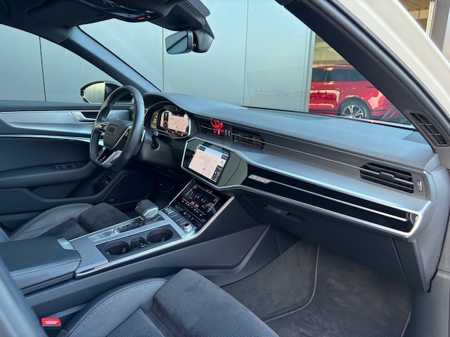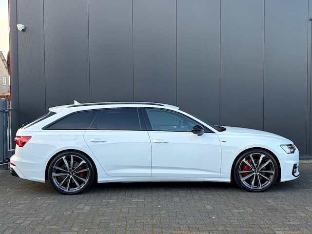 Keurige Audi A6 Avant 55 TFSI e S-Line Competition Automaat in Gletsjerwit metallic met zwart optiek en S-Line interieur, exterieur en onderstel. Deze prachtige A6 is voorzien van o.a. virtual cockpit, adaptieve cruise control, LED Matrix koplampen, Soft-close sluiting, Apple Carplay, Android Auto, MMI Navigatie Plus, donkere dakhemel, ambiente lichtpakket plus, Businesspakket, Qi-lader, 21inch sportvelgen en een afneembare trekhaak 2.000kg.