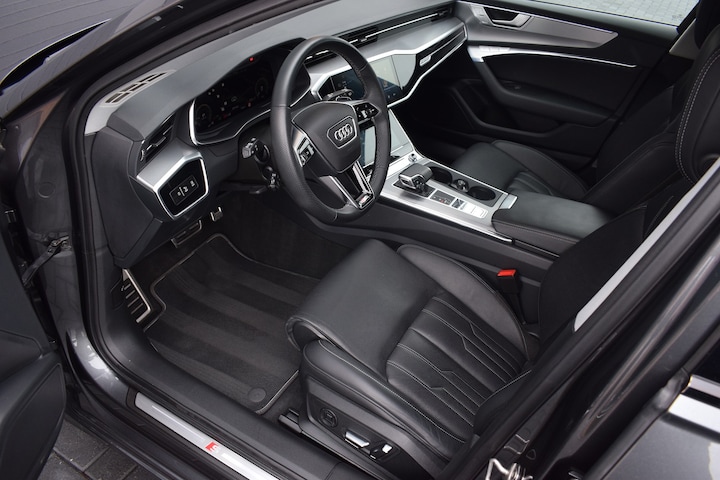 Audi A6 Avant 55 TFSIe Quattro S-line Competition. Compleet uitgevoerd met o.a.: Panoramadak, Lederen interieur, Navigatieysteem MMI High, Head-Up display, Sfeerverlichting interieur, Adaptieve Cruise Control, Climate control, Lane Assist, Elektrisch verstelbare voorstoelen met geheugenfunctie, Stoelverwarming voor en achter, Top view 360 graden camera's, Parkeersensoren voor en achter, HD Matrix LED koplampen, LED achterlichten met animatie, Lichtmetalen velgen 20", Sportonderstel, Hoogglans zwart optiekpakket, Elektrisch bedienbare achterklep, Keyless entry, Dasboardinleg geborsteld aluminium mat, Verkeerstekenherkenning, Wegklapbare trekhaak.