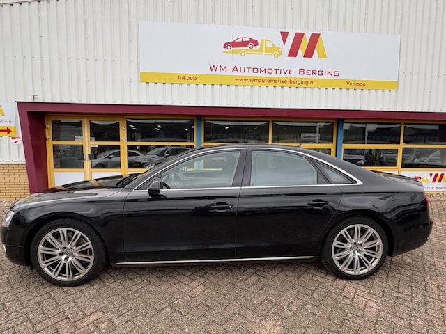 Deze Audi A8 komt uit 2011, werd geleverd van 01-01-2010 tot 30-06-2012 en kostte toen € 151.532,-. Deze originele Nederlandse personenauto staat sinds 2011 op kenteken, is voorzien van een benzine-motor, heeft een maximum vermogen van 273 kW (371 PK) en een cilinderinhoud van 4163 cc.