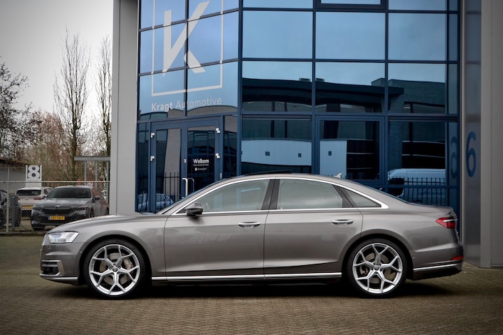 Prachtige in nieuwstaat verkerende Audi A8. Volledig gedocumenteerd incl de twee sleutels. Greep uit de optie's; Glazen Panoramadak, Adaptieve cruisecontrol, 360 camera, 4 zone airconditioning, Valcona lederen interieur, Individual Contour stoelen incl. verwarming/ventilatie en massage functie, Zwarte hemelbekleding, Dubbele beglazing (akoestisch), Head-Up display, Audi Pre sense, Ambienteverlichtings-pakket plus, 20 inch velgen, DAB radio, Soft Close, B&O sound systeem, Standverwarming, Verwarmbaar stuurwiel, Zonneschermen voor achterportieren en achterraam, 21" L.M. Velgen (meerprijs) origineel foto 10 (20" L.M.) enz... Mocht deze auto uw interesse hebben dan mag u contact opnemen met Björn Kragt 06-53868027 (tot 22.00) . Kijk voor meer foto's op www.kragtautomotive.nl. Inruil en garantie mogelijk vraag naar de voorwaarden. Aan deze advertentie kunnen geen rechten worden ontleend. Alle moeite is genomen om de informatie op deze internetsite zo actueel mogelijk weer te geven. Fouten zijn echter niet uit te sluiten. Vertrouw daarom niet alleen op deze informatie, maar controleer bij aankoop de zaken die uw beslissing zouden kunnen beïnvloeden.