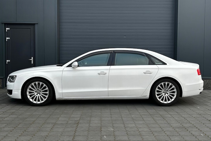 UNIEK! Zeer bijzondere en bomvolle Audi A8 Lang / LWB met de bijzondere 500pk sterke 6.3 W12 motor en origineel slechts 44076km! Deze verlengde Audi is uitgevoerd in Ibis WieB met een tijdloos zwart volledig lederen interieur met houtafwerking en is o.a. voorzien van lichtmetalen velgen, luchtvering met automatische niveauregeling, dubbel schuifdak, stoelverwarming voor en achter, stoelventilatie voor en achter, elektrisch verstelbare voorstoelen met massagefuncite en geheugen, elektrische verstelbare stuurkolom, elektrisch verstelbare achterstoelen achter met massagefunctie en geheugen, rearseat entertainmentsysteem, Bang and Olufsen Advanced (B&O) 1400watt soundsystem met DSP, navigatie, bluetooth, zonnescherm in achterportieren en hoedenplank, PDC voor en achter met achteruitrijcamera, nightvision, keyless entry, matrix LED koplampen en LED achterlichten, 4 zone climate control, adaptieve cruise control, lane assist, dodehoekdetector, enz. enz. NIEUWPRIJS RUIM € 276.000,-! Volledig dealeronderhouden Audi limo met complete historie!