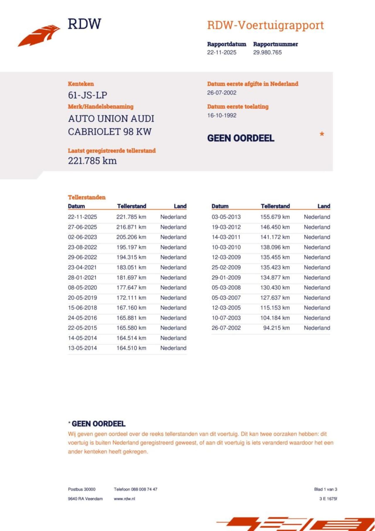 | Kilometerstand | 221.785 km |