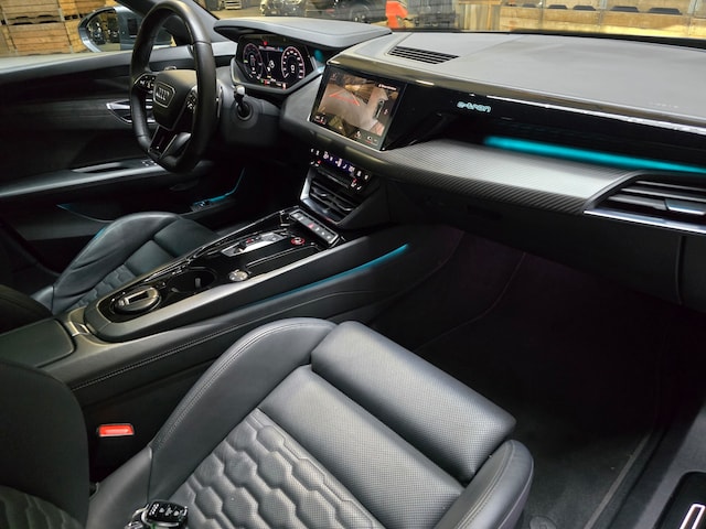 Bij het ontwerpen van een sportwagen als deze worden geen compromissen gesloten. Vormgeving en techniek zijn perfect met elkaar in balans. Mag het een beetje exclusief en sportief? Mooi, want deze is uitgevoerd met S-Line styling. Deze auto beschikt over meer dan genoeg motorvermogen. Het maakt niet uit hoe slecht het wegdek is. De luchtvering strijkt alle oneffenheden glad. Een weldaad voor u en uw bijrijder: deze Audi E-tron GT heeft verwarmbare voorstoelen. In deze uitvoering is de E-tron GT voorzien van mooie, maar ook functionele sportstoelen. Het interieur glanst in daglicht door het elektrisch bedienbare panoramadak. Een praktische extra is de elektrisch bedienbare achterklep die opent en sluit met een druk op de knop. De koplampen met matrix LED-verlichting geven daglichtkwaliteit zonder tegenliggers te hinderen. Ook 21 inch lichtmetalen velgen, warmtewerend glas, in delen neerklapbare achterbank, LED-achterlichten, verstelbare lendensteunen en snelheidsafhankelijke stuurbekrachtiging zijn aan boord.