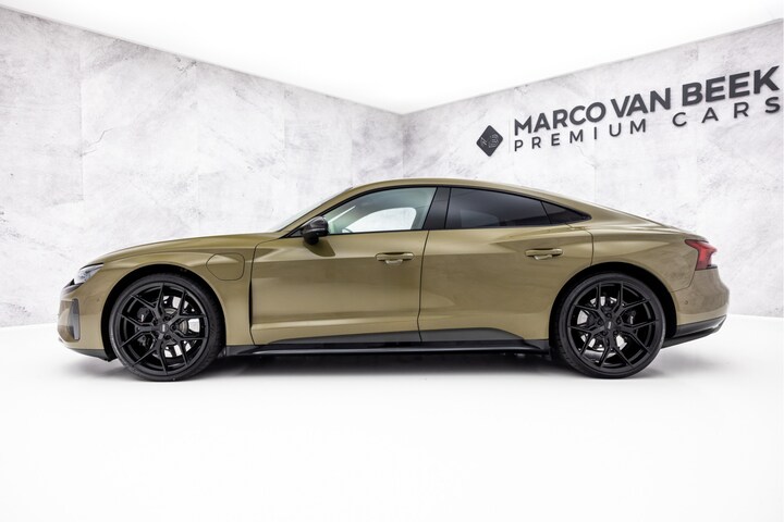 Een E-Tron GT RS is goed voor 600 PK, vierwiel aangedreven én voorzien van achterassturing. Dit exemplaar is gehuld in de prachtige kleur Taktik groen metallic met een uitgebreid carbon exterieurpakket en een luxe lederen interieur mét carbon interieurafwerking!