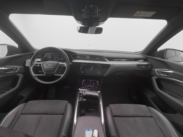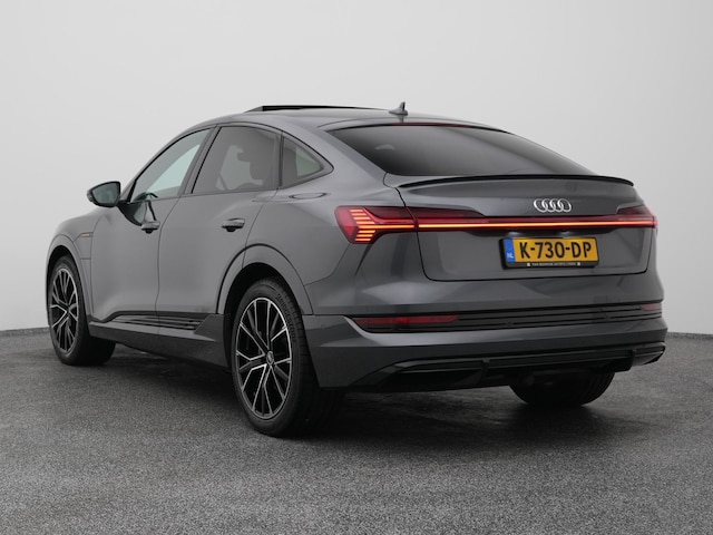 Kijk naar de onvergelijkbare vormgeving. De Audi e-tron Sportback is een elektrische auto die zijn bijzondere karakter niet voor de buitenwereld verbergt. Met de elektromotor zoeft u fluisterzacht over de weg. Fan van S-Line styling? Dat komt mooi uit, want deze is lekker sportief uitgevoerd. De krachtige motor geeft deze Audi uitstekende prestaties. Zelfs een oude klinkerstraat voelt aan als een biljartlaken dankzij de luchtvering. Een weldaad voor u en uw bijrijder: deze Audi e-tron Sportback heeft verwarmbare voorstoelen. U blijft ook in de scherpe bochten goed ondersteund door de fraaie sportstoelen. Van binnen lijkt het allemaal uitermate ruim dankzij de vrije inval van daglicht via het elektrisch bediende glazen panoramadak. Een handige voorziening op deze auto is de elektrische achterklep die u op afstand kunt openen. Bij de zeer complete uitrusting van deze auto behoren ook 21 inch lichtmetalen velgen, LED koplampen, adaptief dempingsysteem, warmtewerend glas, zwarte hemelbekleding en in delen neerklapbare achterbank.