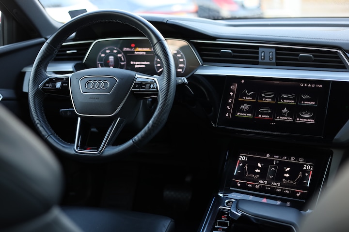 Duurzame mobiliteit is niet langer een ongrijpbare droom. Audi maakt het waar met de innovatieve elektrische e-tron. De techniek van deze auto is radicaal anders dan u gewend bent. U rijdt zacht zoemend naar uw bestemming, de actieradius van de accu's is ruimschoots voldoende voor de meeste dagelijkse ritten. De S-Line styling accentueert het sportieve karakter van deze Audi. Een krachtige motor geeft deze auto zijn sportieve prestaties. Een blik van dichtbij onthult meteen twee mooie pluspunten: het lederen interieur en de elektrisch bedienbare achterklep. Lekker hoor, die verwarmbare voorstoelen. Helemaal op koude dagen. Pittig rijden wordt nog comfortabeler dankzij de fraaie sportstoelen. Iedere oneffenheid in de weg wordt geëlimineerd door de uitstekende luchtvering. De matrix LED-verlichting in de koplampen bestaat uit een raster van lichtpunten met maximale opbrengst. Bij tegenliggers past het systeem precies die punten aan die hinderlijk kunnen zijn. U behoudt maximaal zicht! Bij de uitrusting van deze Audi horen onder meer 21 inch lichtmetalen velgen, adaptief dempingsysteem, warmtewerend glas, in delen neerklapbare achterbank, LED-achterlichten en verstelbare lendensteunen.