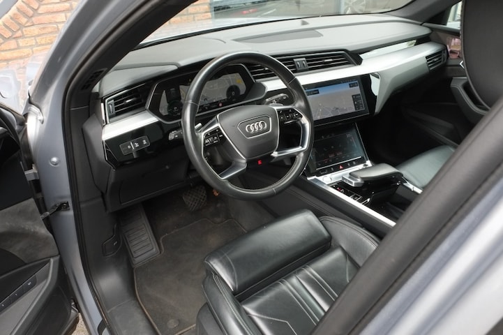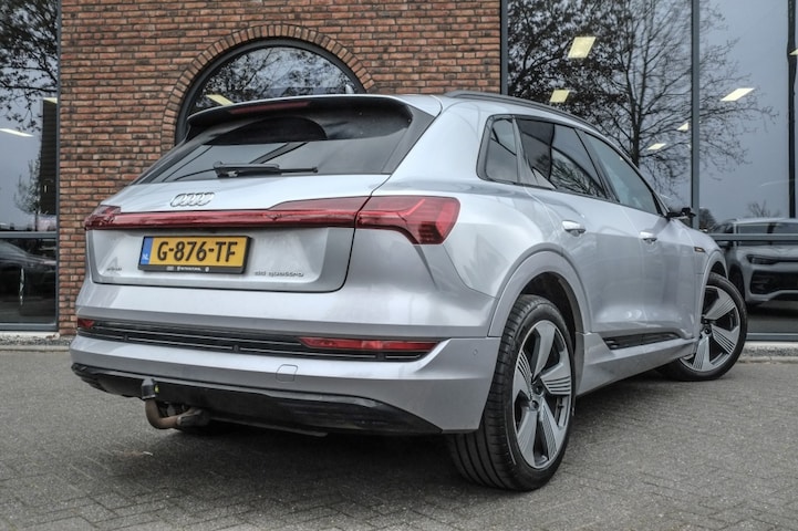 Naast deze luxe opties beschikt deze Audi e-tron ook over een Afneembare trekhaak, waardoor je gemakkelijk een fietsendrager of aanhanger kunt bevestigen. De zilveren metallic lak geeft de auto een stijlvolle uitstraling die perfect past bij het karakter van deze premium SUV.