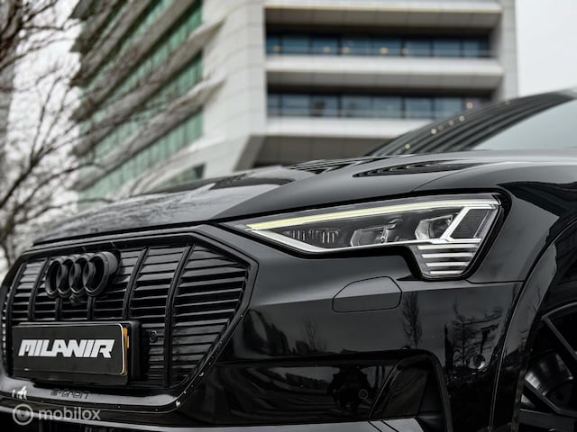 Prachtige Audi e-tron 55 in stijlvolle black on black uitvoering. Deze luxe elektrische SUV heeft een WLTP-actieradius van ca. 420 km en is voorzien van mooie opties zoals lederen bekleding, adaptieve cruise control, geheugenstoelen en een 360° camera.