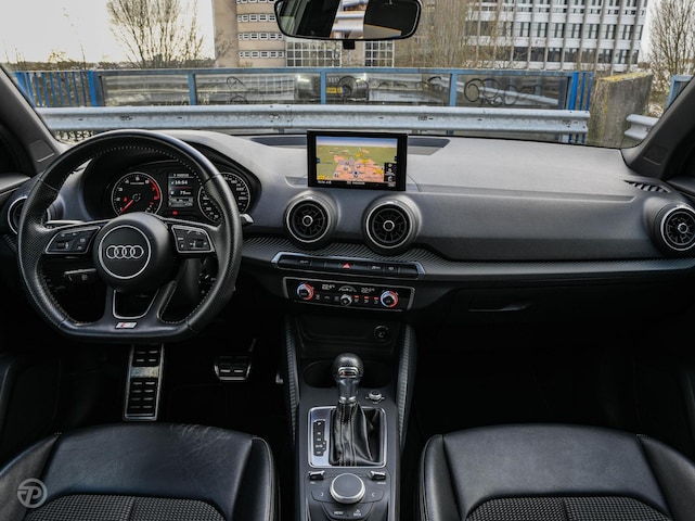 Qua uitstraling is dit allesbehalve een standaard Q2. Dankzij het S-Line interieur en exterieur heeft de auto een uitgesproken sportieve look. De 19 inch lichtmetalen velgen, dynamische knipperlichten en LED koplampen zorgen voor een moderne en krachtige uitstraling, terwijl het extra getinte glas achter en de donkere hemelbekleding het geheel een exclusief karakter geven.