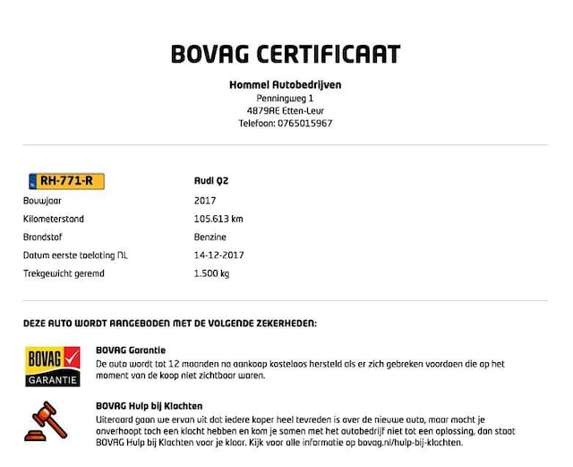 - BOVAG Garantie 12 maanden