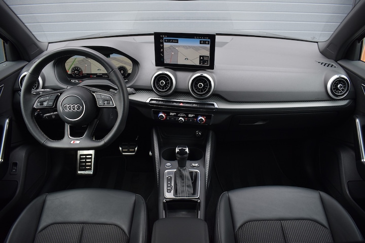 Audi Q2 35 TFSI 150pk S-tronic S-line. Uitgevoerd met o.a.: Climate control, Cruise control, Virtual Cockpit, Matrix LED koplampen, LED achterlichten met dynamische knipperlichten, Half lederen interieur, Navigatiesysteem MMI High, Sfeerverlichting interieur, Apple Carplay / Android auto, Digitale radio ontvangst DAB, Lederen multifunctioneel sportstuur met schakelflippers, Parkeersensoren voor en achter, Achteruitrijcamera, Elektrisch bedienbare achterklep, Centrale vergrendeling 'Keyless entry', Elektrisch bedienbare kindersloten, Buitenspiegels elektrisch inklapbaar, Lichtmetalen velgen 18", Hoogglans zwart optiekpakket incl. zwarte Audi logo's.