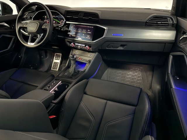 Bij het ontwerpen van de Audi Q3 Sportback stonden uw comfort en uw veiligheid centraal. Het sportieve uiterlijk is meegeleverd in de vorm van de S-Line styling. De aandrijving van deze Audi wordt verzorgd door een viercilinder motor en een automatische transmissie. De auto is voorzien van leren bekleding - een fraaie en sfeerverhogende extra. Bestuurder en bijrijder krijgen een warm welkom: deze Audi Q3 Sportback is voorzien van verwarmbare voorstoelen. U blijft ook in de scherpe bochten goed ondersteund door de fraaie sportstoelen. Laat de zon maar schijnen door het elektrisch bediende glazen panoramadak. Een handige voorziening op deze auto is de elektrische achterklep die u op afstand kunt openen. In deze auto profiteert u onder andere ook van: 20 inch lichtmetalen velgen, sportonderstel, warmtewerend glas, adaptieve verlichting, in delen neerklapbare achterbank en LED-achterlichten.