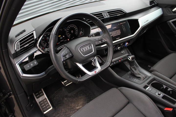De drievoudige S-Line uitvoering geeft deze Q3 Sportback een uitgesproken sportieve uitstraling, waarbij zowel het interieur als exterieur tot in detail zijn afgewerkt met hoogwaardige materialen en sportieve accenten. Het Black Optik pakket versterkt dit karakter nog verder en zorgt voor een krachtige, moderne look die direct opvalt. Het panoramadak brengt extra licht en ruimte in het interieur, wat iedere rit aangenamer maakt en bijdraagt aan een open en luxe gevoel.