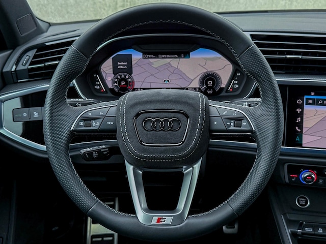 RVS instaplijsten incl. LED verlichting|Zwarte Audi emblemen rondom|Black Pack Plus / Zwart optiekpakket|Hoogglans zwarte grille|Hoogglans zwarte raamomlijsting|Hoogglans zwarte Audi emblemen|Hoogglans zwarte sideskirts|Hoogglans zwarte buitenspiegels|Audi RSQ3 Design Black diffuser + Zwarte uitlaat sierstukken|Privacy Glass|Standkachel / Interieurvoorverwarming fabrieksaf|