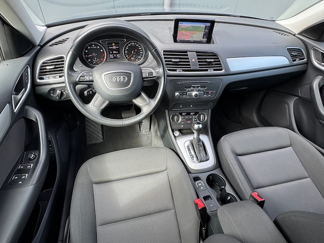 Het is niet alleen de bouwkwaliteit waar Duitse auto's om bekend staan, maar ook de rijkwaliteiten. Dat merkt u achter het stuur van deze Audi Q3. De aandrijving van deze Audi wordt verzorgd door een viercilinder motor en een automatische transmissie. De achterklep opent automatisch met een druk op de knop. Handig als u met volle handen staat. Dankzij de xenonverlichting profiteert u in het donker van een krachtige en heldere lichtbundel. Ook 17 inch lichtmetalen velgen, warmtewerend glas, in hoogte verstelbare voorstoelen, in delen neerklapbare achterbank, verstelbare lendensteunen en snelheidsafhankelijke stuurbekrachtiging horen tot de voorzieningen op deze auto.