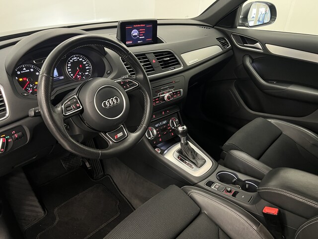 Deze Audi Q3 bewijst haar klasse met een elegant uiterlijk en een comfortabele binnenruimte, onmiskenbaar een kwaliteitsauto uit Duitsland. Een aantrekkelijke en fraaie optie is de expressieve S-Line styling. In deze auto vindt u een benzinemotor en een automatische transmissie. 's Winters komen de verwarmbare voorstoelen heerlijk van pas. In het interieur domineren de sportstoelen, die er niet alleen stijlvol uitzien, maar die u ook optimaal ondersteunen tijdens de rit. Met de krachtige xenonverlichting rijdt u ontspannen in het donker. Tot de voorzieningen van deze auto behoren 18 inch lichtmetalen velgen, sportonderstel en halflederen bekleding.