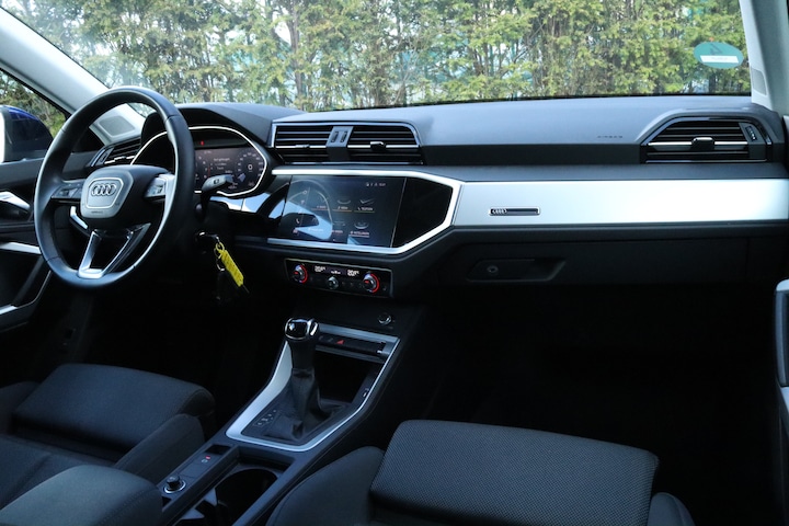 Het interieur is hoogwaardig afgewerkt en uitgerust met slimme technologie. Zo beschikt deze Q3 over de Audi Virtual Cockpit, Apple CarPlay, en een overzichtelijk infotainmentsysteem. Voor extra comfort onderweg zijn er climate control, stoelverwarming, en getint glas aanwezig. De elektrische achterklep maakt in- en uitladen eenvoudig, terwijl de parkeersensoren achter zorgen voor extra gemak bij het inparkeren.