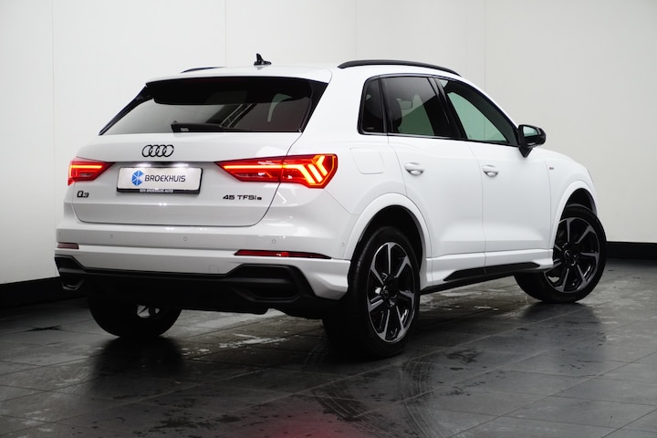 Bij de bouw van de Audi Q3 wordt niets aan het toeval overgelaten. Vandaar dat hier een auto staat die in optimale conditie verkeert. Onder de motorkap een elektromotor en een verbrandingsmotor. Veel duurzame kilometers dus! Bestuurder en bijrijder krijgen een warm welkom: deze Audi Q3 is voorzien van verwarmbare voorstoelen. Goeie looks? Jazeker! Maar de sportstoelen zorgen ook voor een goed gesteunde en comfortabele zit. Verder is de Audi uitgerust met: LED-koplampen, Audi instelbaar onderstel (drive select), elektrische handrem, zwarte hemelbekleding, LED-achterlichten en verwarmde ruitensproeiers. Kommaar-kommaar-kommaar, aldus de achteruitrijcamera. Iedere centimeter vrije ruimte komt haarscherp in beeld. Schadevrij inparkeren maar! Adaptive cruise control is veilig en comfortabel. De snelheidsregelaar houdt automatisch afstand tot het voertuig dat voor u rijdt. Kaartlezen is verleden tijd, dankzij het aanwezige MMI navigatiesysteem. Volumeknoppen, zenderschakelen, muten... U doet alles met de audiobediening op het stuur. Veilig en gemakkelijk. Voor een storingvrije radio-ontvangst zorgt de ingebouwde DAB-ontvanger. Ook is de Audi uitgerust met: regen- en lichtsensor, airconditioning, automatisch dimmende spiegels en isofix-aansluiting. Deze Audi is voorzien van verschillende intelligente veiligheidsvoorzieningen. Ze kijken tijdens het rijden als het ware met u mee, ze signaleren potentieel gevaarlijke situaties en in een aantal gevallen kunnen ze ook ingrijpen. Tijdens de rit hebt u altijd een bijrijder, want de verkeersbord-detectie leest de borden langs de weg en projecteert ze voor u op het instrumentarium. De Brake Assist haalt het maximum uit de remkracht van deze Audi Q3 als zich een noodsituatie voordoet. Meer weten? Onze verkoper maakt graag een afspraak om u alles te laten zien!