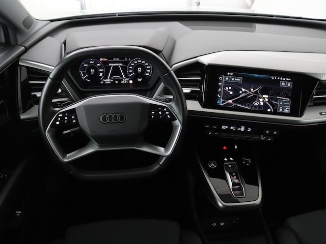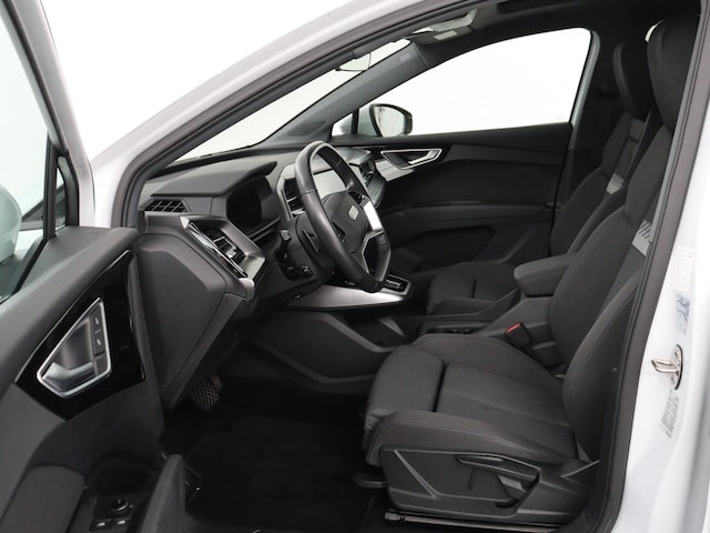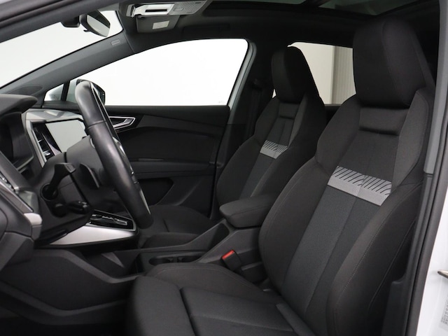 De Audi Q4 e-tron vertegenwoordigt de nieuwe generatie auto's en verenigt elektrische kwaliteit en duurzaamheid met elkaar. Met de combinatie van elektrische aandrijving en automatische transmissie manoeuvreert u soepel door het verkeer. Voorin is het 's winters genieten met de verwarmbare voorstoelen voor zowel bestuurder als bijrijder. U blijft ook in de scherpe bochten goed ondersteund door de fraaie sportstoelen. Fijn zo'n elektrisch bediend glazen panoramadak. Een praktische extra is de elektrisch bedienbare achterklep die opent en sluit met een druk op de knop. Verblinding van tegenliggers is er niet meer bij, dankzij de koplampen met matrix LED-verlichting. En toch de kwaliteit van daglicht in het donker! Tot de uitrusting behoren ook 19 inch lichtmetalen velgen, donker getint glas achter, neerklapbare achterbank en LED-achterlichten.