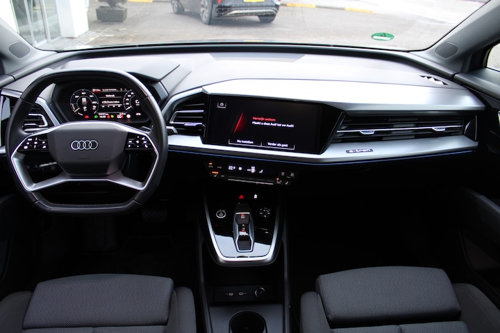 Het digitale dashboard zorgt voor een super functionele display van reisinformatie. Het infotainmentaanbod is zeer uitgebreid. Ontspannen reizen doe je met behulp van het full map navigatiesysteem terwijl je muziek afspeelt via het audio-installatiesysteem met DAB-radio. Tot de standaard uitrusting van deze auto hoort ook automatische airconditioning. Boem is ho? Niet bij deze Audi Q4 e-tron. De piepjes van de parkeersensoren waarschuwen je op tijd voor obstakels. Nooit meer last van een slapende rechtervoet dankzij de uitgekiende cruise control!