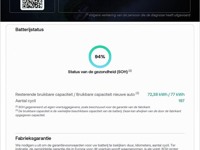 Accu: 77 kWh, Conditie: 94%