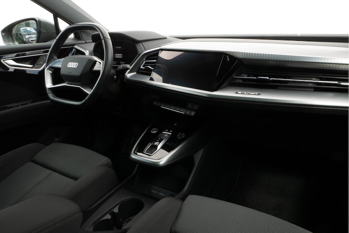 Topprestaties zonder emissies: de Audi Q4 e-tron is een elektrische auto zonder compromissen. De prestaties van de elektromotor kunnen de vergelijking met een brandstofmotor moeiteloos aan. Een krachtige motor geeft deze auto zijn sportieve prestaties. Geen gerommel bij het inladen; één druk op de knop en de elektrisch bedienbare achterklep gaat open. En precies zo gemakkelijk is het met het elektrisch bediende glazen panorama dak! In de verwarmbare voorstoelen zitten is elke keer een welkom gevoel. Laat die bochten maar komen! In de sportstoelen zitten u en uw bijrijder altijd goed! De koplampen zijn voorzien van de allernieuwste lichttechnologie: matrix LED-verlichting. Tot de uitrusting van deze Audi behoren ook 19 inch lichtmetalen velgen, neerklapbare achterbank en LED-achterlichten.
