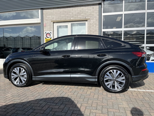 Kijk naar de onvergelijkbare vormgeving. De Audi Q4 Sportback e-tron is een elektrische auto die zijn bijzondere karakter niet voor de buitenwereld verbergt. Het aantal kilometers dat je op een acculading kunt rijden, is ruimschoots genoeg voor de gangbare dagelijkse ritten, en het opladen kan in de meeste gevallen 's nachts gebeuren. Een krachtige motor geeft deze auto zijn sportieve prestaties. In de winter wordt het echt genieten met de stoelverwarming. Een handige voorziening op deze auto is de elektrische achterklep die je op afstand kunt openen. De geavanceerde matrix LED-verlichting in de koplampen levert maximaal helder zicht en past zich subtiel aan zodra er een tegenligger komt. Zonder lichtkwaliteitsverlies! Bij de zeer complete uitrusting van deze auto behoren ook 19 inch lichtmetalen velgen, zwarte hemelbekleding, donker getint glas achter, neerklapbare achterbank en LED-achterlichten.