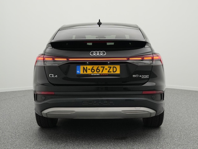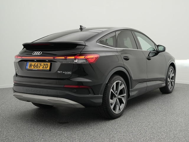 Intelligente technologie. Geen emissies en een fantastisch rijgedrag. Welkom in de Audi Q4 Sportback e-tron. Dankzij de automatische transmissie en elektrische aandrijving, navigeer je gemakkelijk door het verkeer. Koude start? Niet met de verwarmbare voorstoelen! Comfortabel zitten, ook als de rit onstuimig is? Dat kan met de sportstoelen. De elektrisch bedienbare achterklep opent met een druk op de knop. Verblinding van tegenliggers is er niet meer bij, dankzij de koplampen met matrix LED-verlichting. En toch de kwaliteit van daglicht in het donker! De uitmonstering van deze auto wordt gecompleteerd door onder meer 20 inch lichtmetalen velgen, sportonderstel, adaptief dempingsysteem, geluidsisolerende ramen, neerklapbare achterbank en LED-achterlichten.