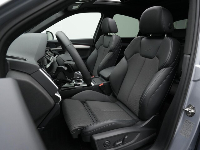 Deze Audi Q5 Sportback combineert de krachtige uitstraling van een SUV met het elegante lijnenspel van een coupé. Uitgevoerd met S-Line interieur en S-Line exterieur oogt hij strak, sportief en verfijnd tegelijk. De floretzilver metallic lak geeft de auto een moderne en tijdloze uitstraling, terwijl de 20 inch Audi Sport velgen het sportieve karakter subtiel versterken. Het grote panoramadak zorgt voor veel licht in het interieur en draagt bij aan het ruimtelijke gevoel voor zowel bestuurder als passagiers. Het geheel voelt premium, solide en doordacht – precies zoals je van een Q5 mag verwachten.