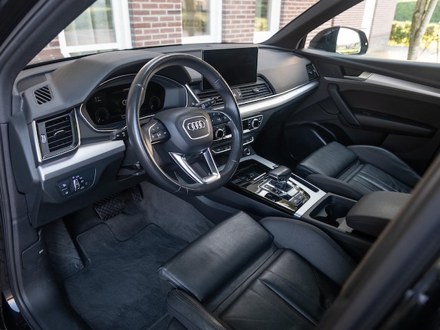 De uitstraling van deze Q5 Sportback is al even indrukwekkend. Het S-Line Competition pakket, gecombineerd met het Zwart Optiek exterieur, maakt van deze auto een uitgesproken sportieve en elegante verschijning. De Matrix LED-koplampen zorgen niet alleen voor perfecte verlichting, maar geven de voorzijde een karakteristieke en krachtige uitstraling. Het glazen panoramadak brengt licht en ruimte, terwijl het volledig lederen interieur en de Virtual Cockpit Plus zorgen voor een high-end ambiance die je normaal alleen in topklasse modellen vindt.