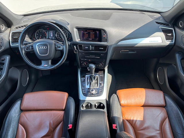 De Audi Q5 vertegenwoordigt het beste van degelijk Duits design. Het sportieve uiterlijk is meegeleverd in de vorm van de S-Line styling. De krachtige motor geeft deze Audi uitstekende prestaties. De leren bekleding maakt het interieur helemaal af! Ziet er goed uit, die sportstoelen. Maar waar het om gaat, is de solide zit onder alle omstandigheden. Dankzij de xenonverlichting profiteert u in het donker van een krachtige en heldere lichtbundel. In deze Audi profiteert u onder andere ook van: 20 inch lichtmetalen velgen, sportonderstel, halflederen bekleding, zwarte hemelbekleding, extra getint glas en verstelbare lendensteunen.