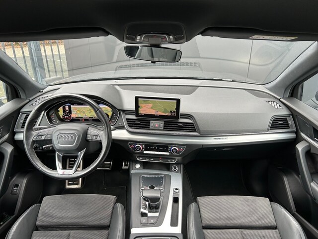 Keurige en goed onderhouden Audi Q5 2.0 TFSI quattro S-Line Automaat voorzien van lederen/alcantara sportstoelen incl. stoelverwarming, virtual cockpit, Apple Carplay, Android Auto, navigatie full map, cruise control, parkeersensoren v+a, LED verlichting, donkere dakhemel, Audi Drive select, draadloos telefoon lader, elektrische achterklep, 21inch sportvelgen en een afneembare trekhaak 2.400kg.