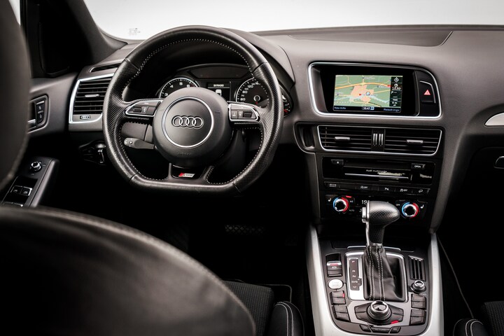 Ook in het interieur is het sportieve karakter duidelijk aanwezig. De zwarte hemelbekleding en S Line afwerking geven de auto een krachtige en luxe uitstraling, terwijl de hoogwaardige materialen en afwerking het premium karakter van Audi onderstrepen. De combinatie van sportiviteit en comfort maakt deze Q5 tot een veelzijdige SUV die zich zowel ontspannen als dynamisch laat rijden.