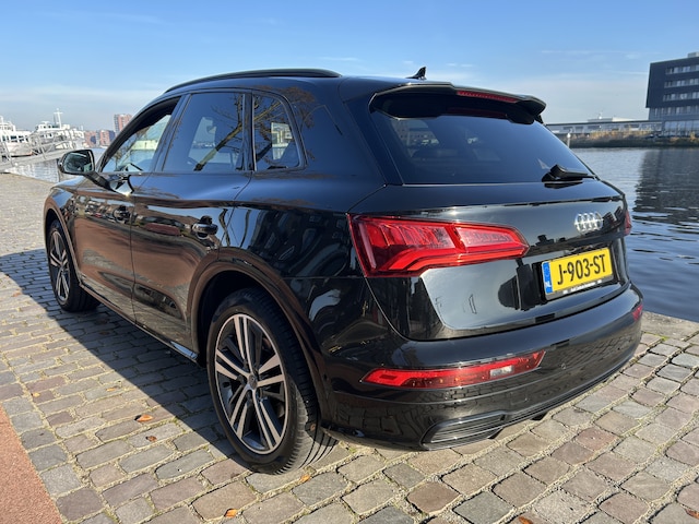 De Audi Q5 is gebouwd met hoogwaardige techniek en maakt het rijden van lange ritten, maar ook korte stukjes, tot een feestje. Met de S-Line styling trekt u op een positieve manier de aandacht. De aandrijving komt voor rekening van een benzinemotor en een automatische transmissie. Het stijlvolle lederen interieur geeft deze Audi Q5 net dat beetje extra. Deze Audi Q5 heeft verwarmbare voorstoelen, voor zowel bestuurder als bijrijder. Chauffeur en bijrijder zitten stabiel in de scherpe bochten door de sportstoelen. Het panoramadak zorgt voor maximale lichtinval en kan worden geopend voor extra ventilatie. De elektrisch bedienbare achterklep opent met een druk op de knop. De kwaliteit van de matrix LED-verlichting geeft het gevoel dat u bij daglicht rijdt. In deze auto profiteert u onder andere ook van: 20 inch lichtmetalen velgen, sportonderstel, warmtewerend glas, dakspoiler, in delen neerklapbare achterbank en LED-achterlichten.