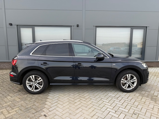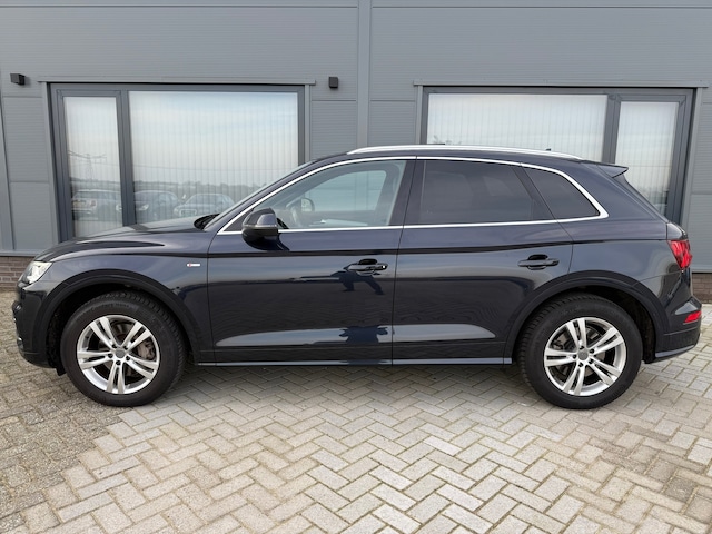 Met een auto als deze Audi Q5 komt u absoluut goed voor de dag. Ook qua looks springt deze auto eruit, vanwege de fraaie S-Line styling. De uitstekende prestaties van deze auto komen van de viercilinder motor en de automatische transmissie. Licht en lucht komen onbelemmerd binnen als u het elektrisch bediende glazen panorama dak met één druk op de knop opent. En net zo gemakkelijk gaat de elektrisch bedienbare achterklep open. Ziet er goed uit, die sportstoelen. Maar waar het om gaat, is de solide zit onder alle omstandigheden. De slimme koplampen gebruiken de allernieuwste matrix LED-verlichting. Altijd maximaal zicht, nooit verblinding bij de tegenligger. Tot de uitrusting behoren ook sportonderstel, warmtewerend glas, dakspoiler, in delen neerklapbare achterbank, LED-achterlichten en verwarmde ruitensproeiers.