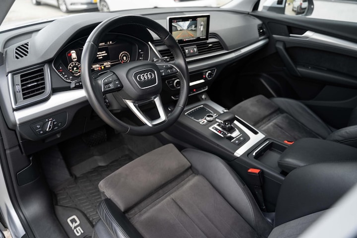 Audi Q5 2.0TFSI quattro Sport Pro Line S, Sportstoelen in alcantara en parelnappa zwart, Hemelbekleding in zwart, Stoelverwarming voor en achter, Elektrisch verstelbare voorstoelen met Memoryfunctie op de bestuurdersstoel, 360 graden camera (Top View), Virtual Cockpit, Adaptive Cruise Control, MMI Navigatie Plus met MMI Touch, 19'' lichtmetalen velgen, LED-koplampen, LED-achterlichten met dynamische knipperlichten, Keyless Entry, Zwenkbare trekhaak, Side Assist (dodehoekassistent), Lane Change Assist, Parkeerstulp (Park Assist), Verkeerstekenherkenning en nog veel meer.....