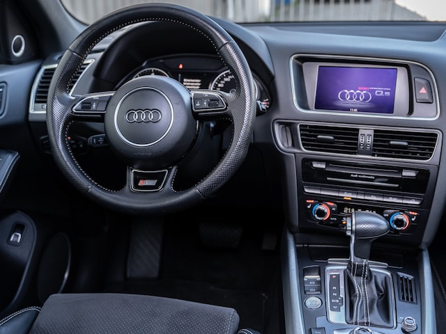 U ziet geen paaltje meer over het hoofd dankzij de achteruitrijcamera. Deze Audi Q5 is voorzien van een elektrisch inklapbare trekhaak voor als u met een caravan of aanhanger op pad wilt. Het high performance audiosysteem produceert krachtige bassen en heldere hoge tonen. Nooit meer te warm of te koud. De automatische airconditioning zorgt altijd voor de temperatuur die u kiest. Achter het stuur van deze Audi bent u niet alleen. De auto kijkt als het ware met u mee tijdens de rit. De regensensor schakelt de ruitenwissers in als het nodig is en de automatisch inschakelbare verlichting doet de lichten voor u aan. U bent in deze Audi ook voorzien van dashboard met spraakbediening, navigatiesysteem met harde schijf, lederen sportstuur, cruise control, keyless entry en dvd-systeem.