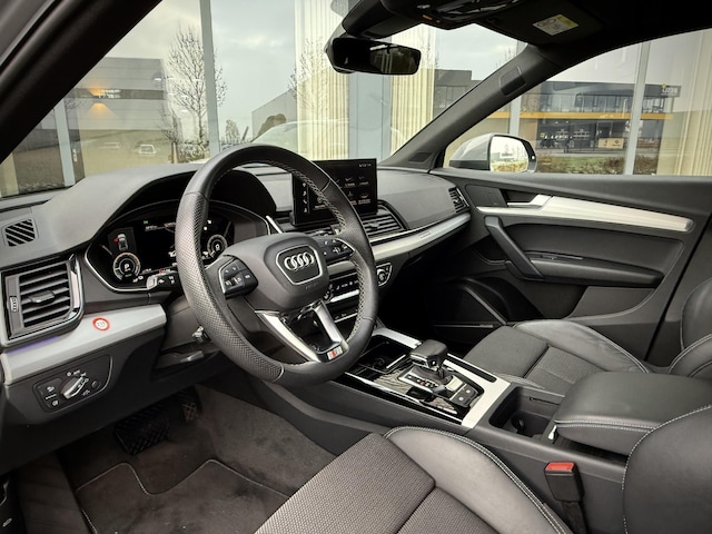 In nieuwstaat verkerende, van eerste eigenaar afkomstige, schadevrij en dealer onderhouden Audi Q5 Plug in Hybride. Voorzien van Quattro vierwielaandrijving, S line interieur, S line exterieur pakket, zwart optiek exterieur pakket met hoogglans zwarte details, OLED matrix LED verlichting, sfeerverlichting (kleur instelbaar), privacy glas af fabriek, elec. achterklep, stoel- en achterbank verwarming, 4 zone climate control, groot beeld MMI, Apple Car Play, draadloze telefoonlader, S line stuurwiel met schakelflippers, virtual cockpit, etc. TOPSTAAT! Voorzien van nieuwe 22 inch hoogglans zwarte performance velgen met nieuwe banden. Prijs is inclusief BTW en rijklaar.