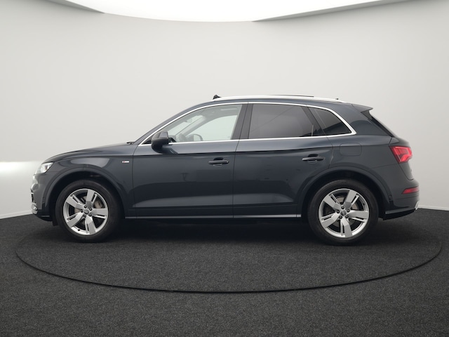 Het uitzonderlijke comfort en stijlvolle uiterlijk van de Audi Q5 straalt in elk aspect haar superioriteit uit. Dit is typerend voor deze hoogwaardige Duitse auto. De S-Line styling geeft deze auto een bijzonder karakter en staat voor sportiviteit en exclusiviteit. De pluspunten van rijden op benzine en rijden op elektriciteit zijn soms lastig te vergelijken. Dus komt de hybride motor van deze Audi Q5 mooi uit. De perfecte combi! Een fraai lederen interieur, dat in daglicht baadt dankzij het elektrisch bediende glazen panorama dak. En voor 'handsfree' in- en uitladen vindt u aan de achterzijde de elektrisch bedienbare achterklep. Deze Audi Q5 heeft niet alleen verwarmbare voorstoelen, maar ze zijn ook nog eens voorzien van massagefunctie. De sportstoelen geven het interieur van deze Q5 een super strakke en sportieve uitstraling. De uitermate solide wegligging is te danken aan de ingebouwde luchtvering. Pak aan, 't is winter! Zo'n verwarmd stuurwiel is dan bijzonder prettig! Koplampen voorzien van de allernieuwste lichttechniek, matrix LED-verlichting. Tot de voorzieningen van deze auto behoren 19 inch lichtmetalen velgen, warmtewerend glas, in delen neerklapbare achterbank, LED-achterlichten en verstelbare lendensteunen.