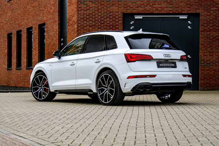 Audi Q5 55 TFSI e Quattro S Line 367PK met zeer veel opties. Bouwjaar 2022 met zwart optiek, rechtstreeks aangekocht bij de officiële Audi dealer in Duitsland! Mèt verlengende (volledige) fabrieksgarantie tot 8-2026.