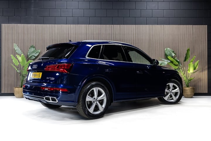 Het interieur van deze Audi Q5 beschermt u als een veilige cocon. Het onderstel is ontworpen om de scherpste bochten en de slechtste wegen aan te kunnen en de motor reageert alert op ieder commando. Geniet van de sportieve uitstraling en de fraaie details die de S-Line styling deze auto geeft. Deze hybride auto heeft een combinatie van een verbrandingsmotor en een elektromotor. 's Winters komen de verwarmbare voorstoelen heerlijk van pas. De sportstoelen geven het interieur een super strakke look. Life is easy! In ieder geval met dit elektrisch bediende glazen panoramadak. De elektrisch bedienbare achterklep opent met een druk op de knop. De kwaliteit van de matrix LED-verlichting geeft het gevoel dat u bij daglicht rijdt. Ook 20 inch lichtmetalen velgen, warmtewerend glas, aluminium dakrailing, in delen neerklapbare achterbank, LED-achterlichten en elektrisch verstelde en verwarmde buitenspiegels horen tot de voorzieningen op deze auto.